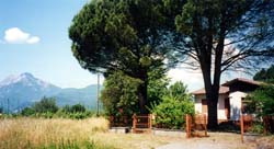 giardino recintato con alberi di meli, un ciliegio e due pini. Il villino